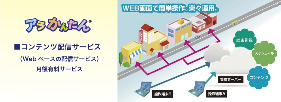 | 端末管理 | 端末への自動配信、状態監視、映像ログの確認 |