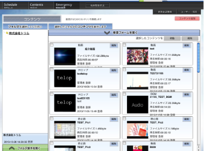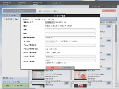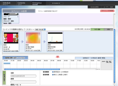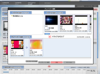 再生したいコンテンツを再生順にドラッグ&ドロップ、動画,静止画、テロップ配信に対応