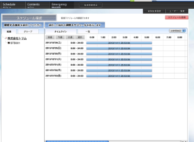 配信時間帯をドラッグ&ドロップ、1分単位で設定可能、毎日、毎週、毎月の一括設定が可能